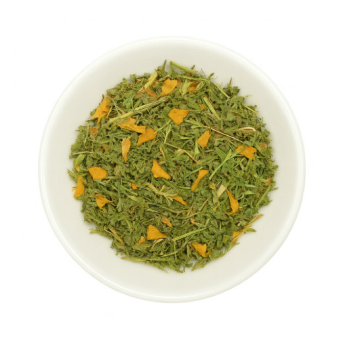 Der Tee duftet mild und sanft kräuterig. Sein Aufguss schimmert hellgolden, fast wie das Licht, das die Blüten im Freien einfangen. Er passt zu ruhigen Momenten: einem Buch in der Hand, einer leichten Decke über den Schultern oder dem stillen Blick aus dem Fenster, wenn die Welt zur Abendstunde weicher wird.